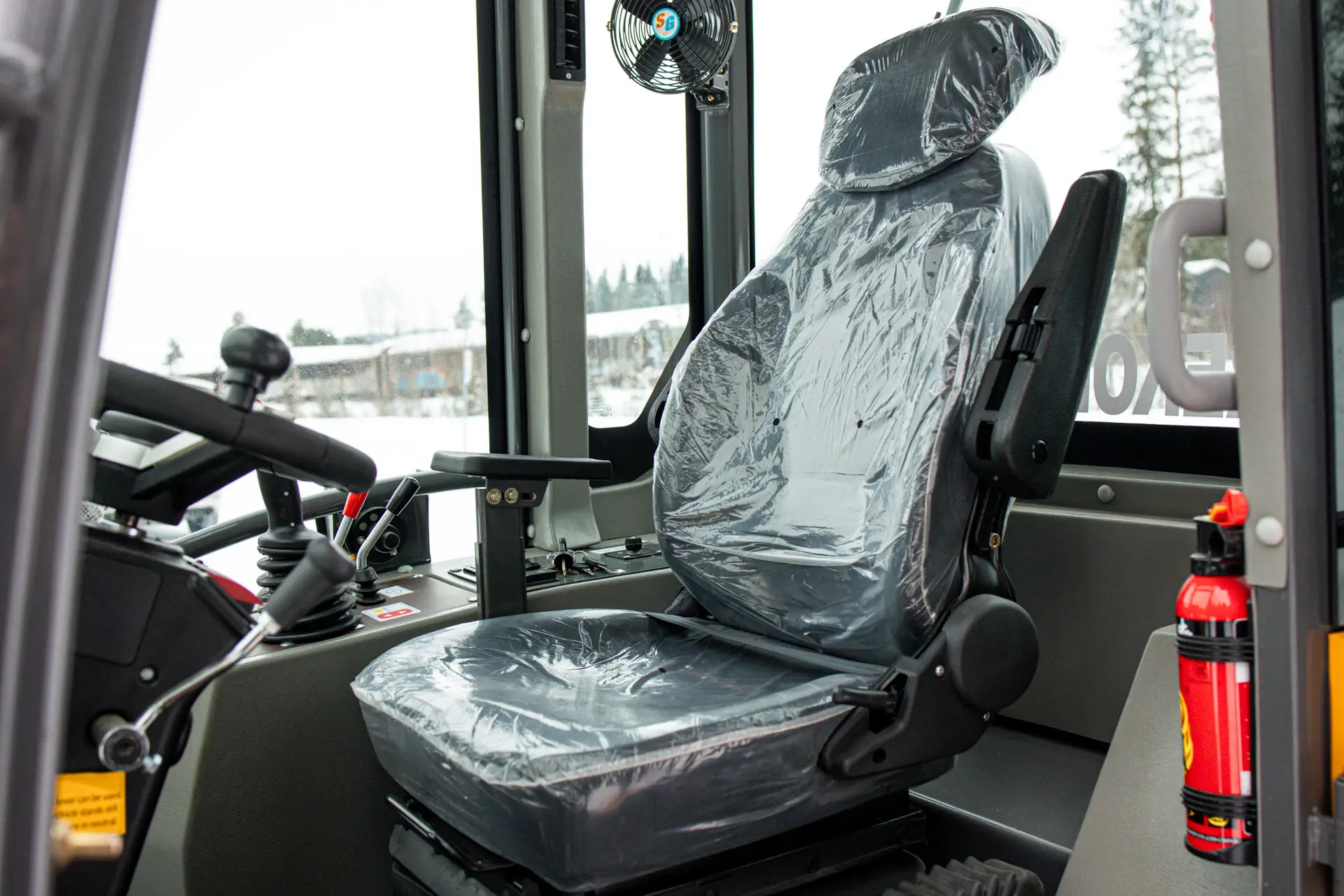 Designad med användaren i fokus erbjuder lastmaskinen bland hydrauliskt snabbfäste för enkla byten av redskap till din hjullastare. Med vår rymliga hytt har du backkamera för enkelt kunna se din omgivning och extra ljudisolering för maximal komfort.