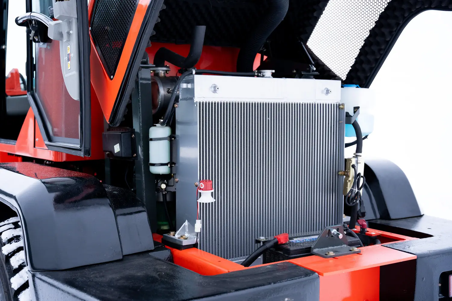 Blixljus FRAM • Blixljus BAK • Luftfjädrad stol • Lastdämpare • Elektrisk joystick • Gräsdäck (M/S) • Motorvärmare • Hydraulik 4e funktion • Backkamera • Varta batteri 12v • Extra ljudisolerad • Dragkrok 50mm kula • Saftblandare